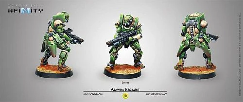 The Asawira Regiment is a formidable attack unit in the service of Haqqislam. The Asawira have the best light-weight powered armor on the market, equipped with advanced aiming and target acquisition devices, and the most effective auto-medical systems.