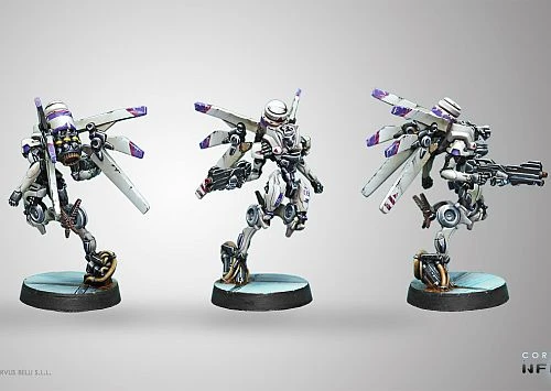 It has orbital and sub-orbital deployment capacity, able to be launched from spaceships, heavy unmanned gliders or a range of other airborne craft. The Garuda’s tactical profile is based on speed. Its rapid deployment to any point of an operation zone is its main feature, but once landed, speed remains a basic offensive/defensive element. Its light structure and protection make the Garuda a fragile remote, but it remains a lethal combatant. Its mimetic system, advanced fire control and great mobility confer the Garuda a high first shot kill probability, increasing its combat lifespan. If a quick kill is needed, the Garuda Tactbot is the best option to swiftly end any combat.