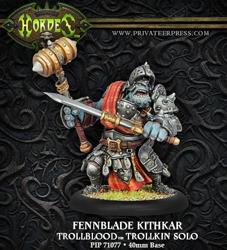 Veterans of countless battles, Fennblade kithkar are warriors of renown. Each has led his brothers in arms time and again against any who would infringe upon trollkin lands or harass their people. More than heroes or champions, these vaunted leaders are brilliant battlefield commanders capable of coordinating the maneuvers of their fellow Fennblades with great precision.